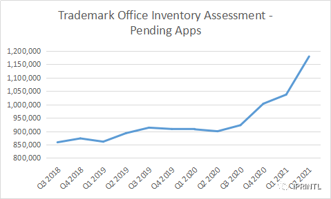 As the number of applications continues to rise, but human resources were insufficient, the USPTO's backlog of pending cases was increasing. As of the end of the Q2 2021, there have been more than 1,179,000 application cases pending for First Action (FA,to decide whether the application to be confirmed for publication or refused) or awaiting examination, increasing nearly 14% than Q1 2021.
