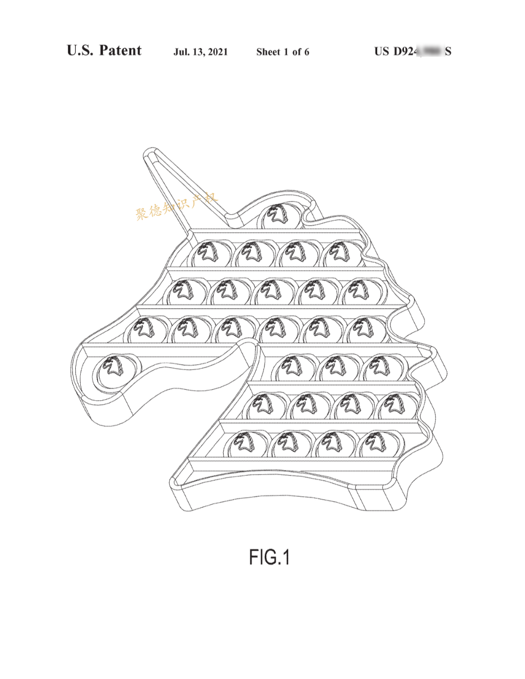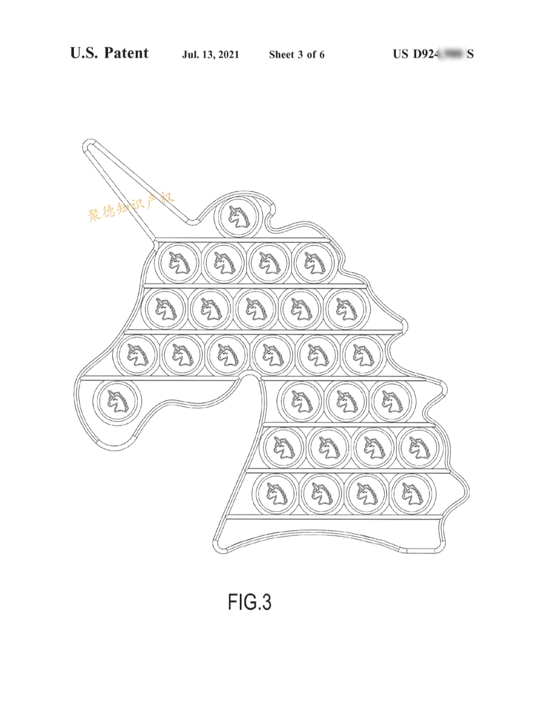 该专利于2020年12月29日提交,通过加急申请,2021年7月13日正式获取专利证书,保护的对象是具有独角兽轮廓的灭鼠先锋类益智玩具。