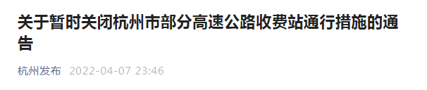 早在4月7日,杭州就发布了《关于暂时关闭杭州市部分高速公路收费站通行措施的通告》。