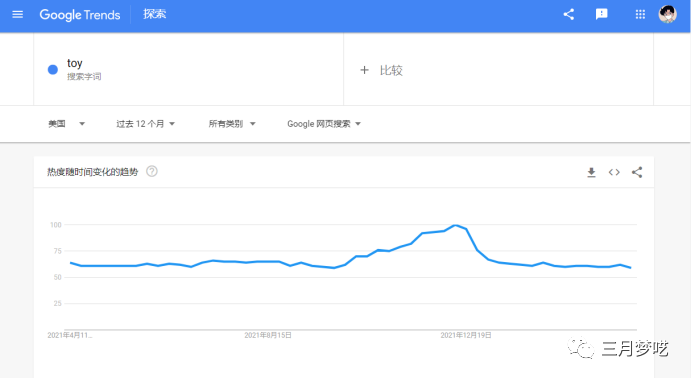 同样我们来看下谷歌趋势的分析,我们看到输入Pets,以一年周期为观察,用户的需求和热度是持续的,而且保持高位水平。
