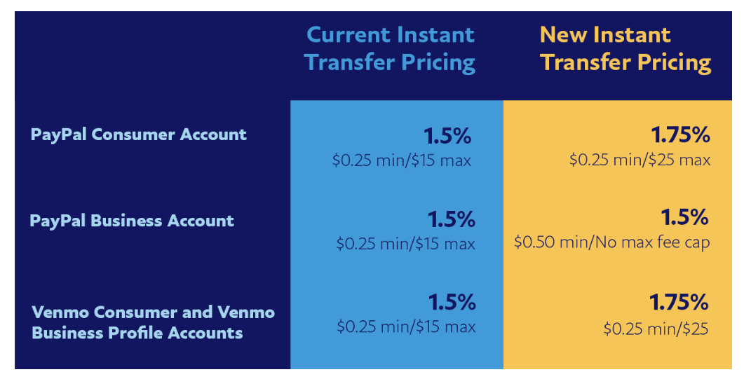 报道称,对于PayPal上的个人账户和Venmo上的消费者和企业而言,需要支付转账金额的1.75%,最低费用为0.25美元,最高费用为25美元。而在此之前,只需支付转账金额.............