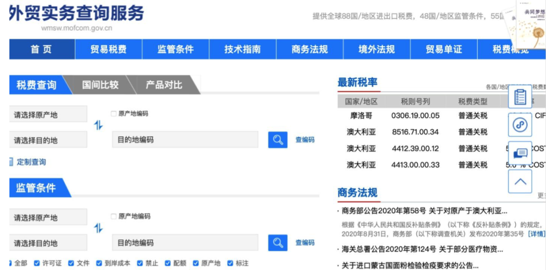 由于传统外贸涉及到出口退税,我们必须要对各个产品的进出口关税的税率进行查询。