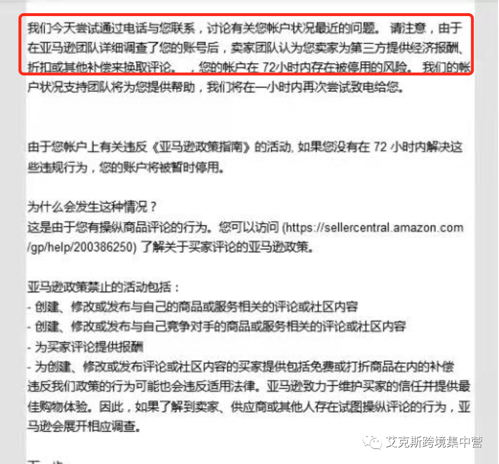 亚马逊根据自己的内部算法,若认为你的评论是不合规的,那么亚马逊就会给你发出警告信,这个警告信可以说十分严重了,但是亚马逊还是选择再给你一次机会,只是给你记过处分,若再犯错,可能就会封店!