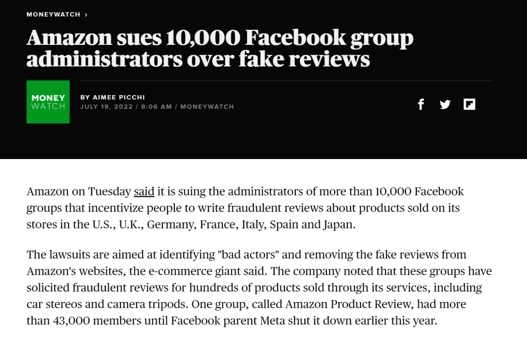 亚马逊指控这些群通过承诺提供金钱或免费产品来换取正面评价,从而导致其平台上的商品存在虚假评论。这些评论意在人为地对某些产品质量做出评价,进而影响客户的购买意愿。