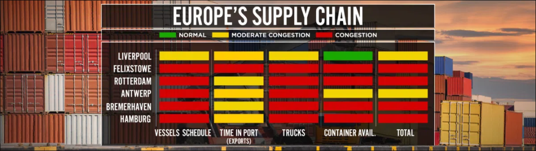 代表工人在昨日(8.24)举行集会的中概述如果不提供更高的薪酬,罢工可能会持续到今年年底。据悉费利克斯托处理约 40% 的英国集装箱运输,照这个发展下去可能会扰乱供应链。CNBC 欧洲供应链热图显示,费利克斯托已正式全面拥堵。
