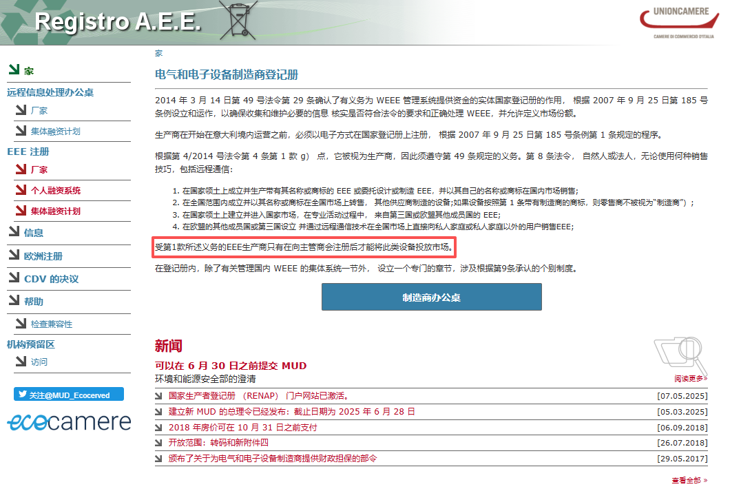 欧盟"生产者延伸责任(EPR)"指令旨在让生产者对产品全生命周期的环境影响负责。意大利作为欧盟重要市场,近期对电气电子设备(WEEE)、电池、包装、聚乙烯等7大类产品的EPR合规要求全面收紧。