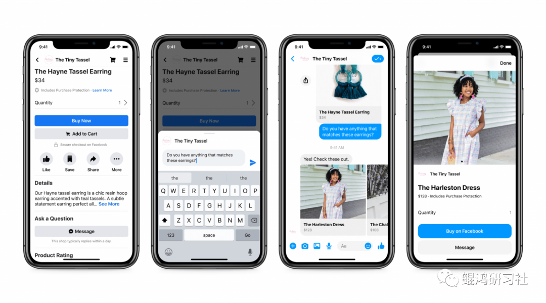 另外Facebook还推出一个新的消费者"Message"联络选项,可以让顾客通过 Messenger、WhatsApp 或 Instagram Direct 向卖家发送信息,相当于淘宝千牛1.0版本,此功能将大大方便品牌和消费者的互动,不管是B2B还是B2C,可以直接在社交聊天界面查看产品,不用跳转到电商平台,极大的降低了消费者的时间成本和跳失率。