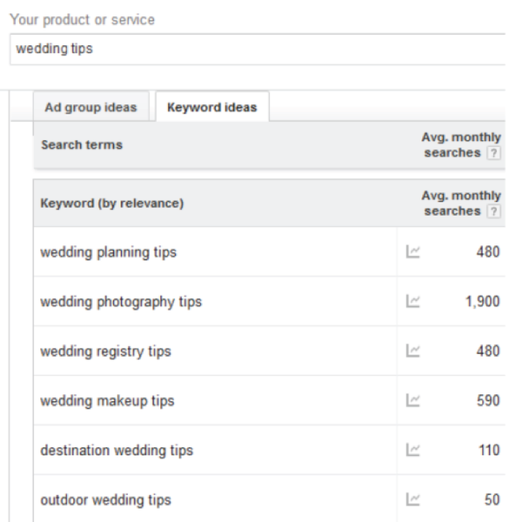 Google给我提供了"keyword ideas".对了,我们现在得到了3个长尾关键词,这三个关键词大多数人是不知道的。因为这些关键词不被大众所发现,我们可以更加容易的针对这几个关键词写针对性的文章,或者登陆页面。而且优化这些页面,并不需要太多的反向链接。