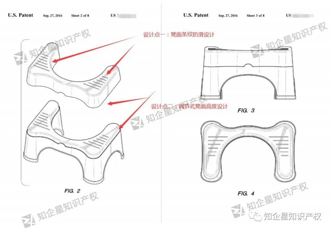 这款马桶凳的设计点在于: 分体式凳面设计;凳面条纹凸起防滑结构;底部防滑垫。