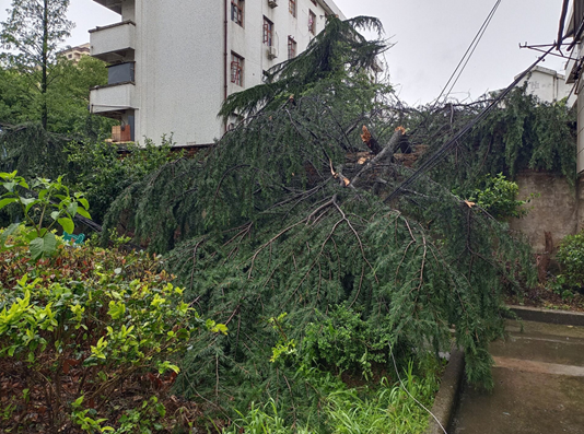 5月10日傍晚,安徽省休宁县出现强对流天气,蓝田镇南塘村路边树枝压倒电线杆图/文 应健 程若虎