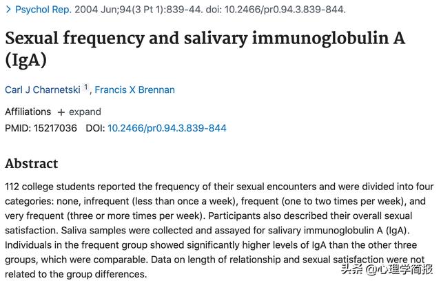 - 性生活频率保持在一周1-2次的实验组平均IgA含量最高,免疫力最强;