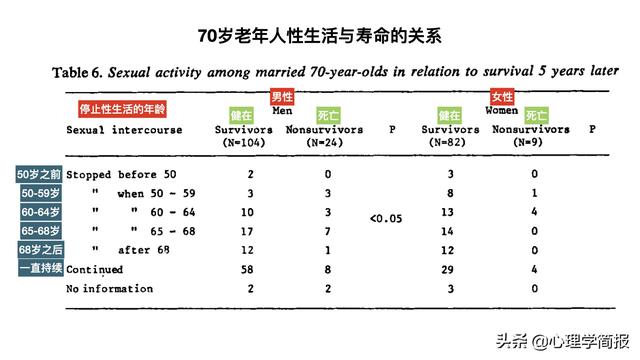 瑞典心理学家G. Persson教授在1971年到1972年开始了一项为期5年的心理学研究项目,该项目主要探究老年人的寿命和心理状况、生活习惯的关系。其中,Persson教授重点研究了70岁之后的老年男女的性生活和寿命的关系[2]。