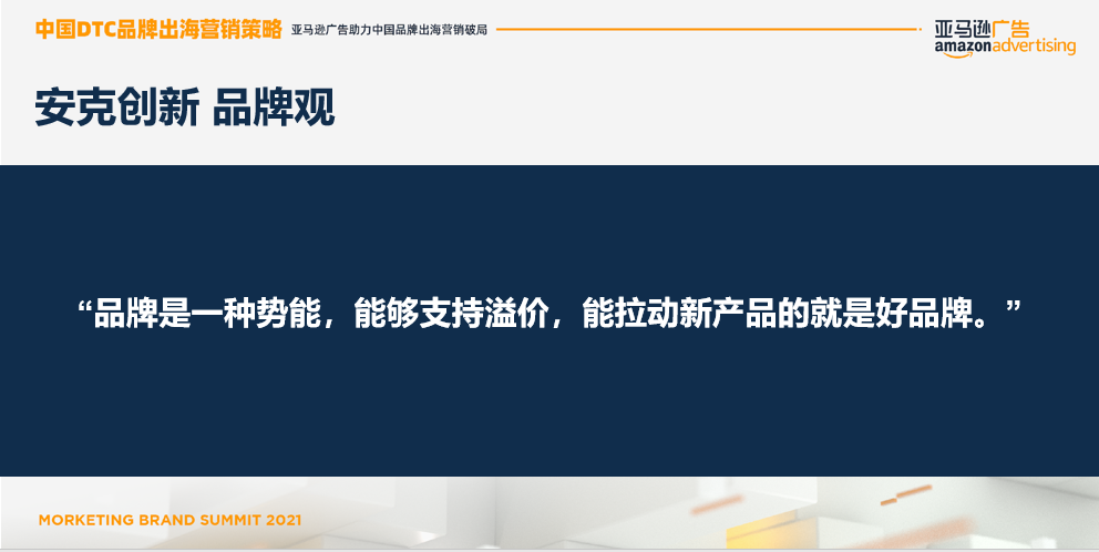 回顾我们刚出海的时候,安克显然没有特别多的线下和线上的资源做不同营销的广告。因此,我们一致认为品牌本身在不同的阶段可以为企业带来不同的价值。