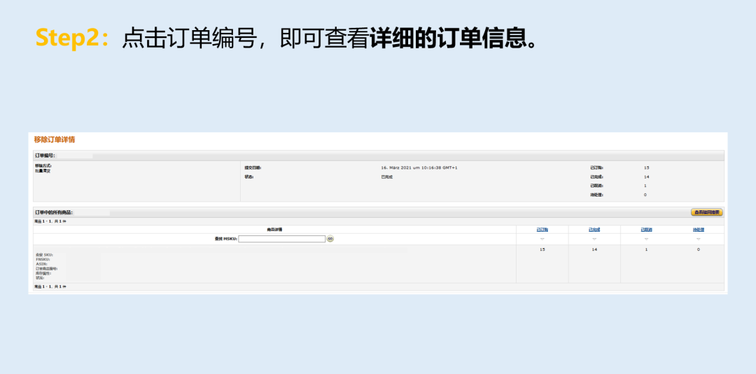 可以按照下述操作对已经提交的批量清货订单进行追踪,并查看回收价值款项。