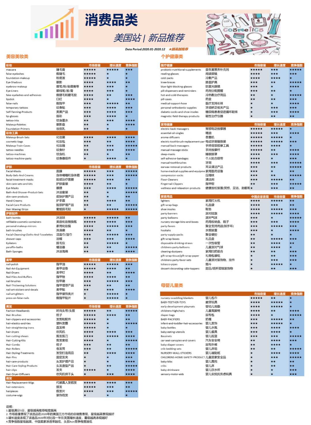 今天为大家奉上美亚官方选品的终极篇--美妆,个护,母婴品类,这几个品类虽说没有3C类目的惊涛骇浪,但是也是卧虎藏龙,如果能找到适合自己的产品,奔向小康之路问题不大。