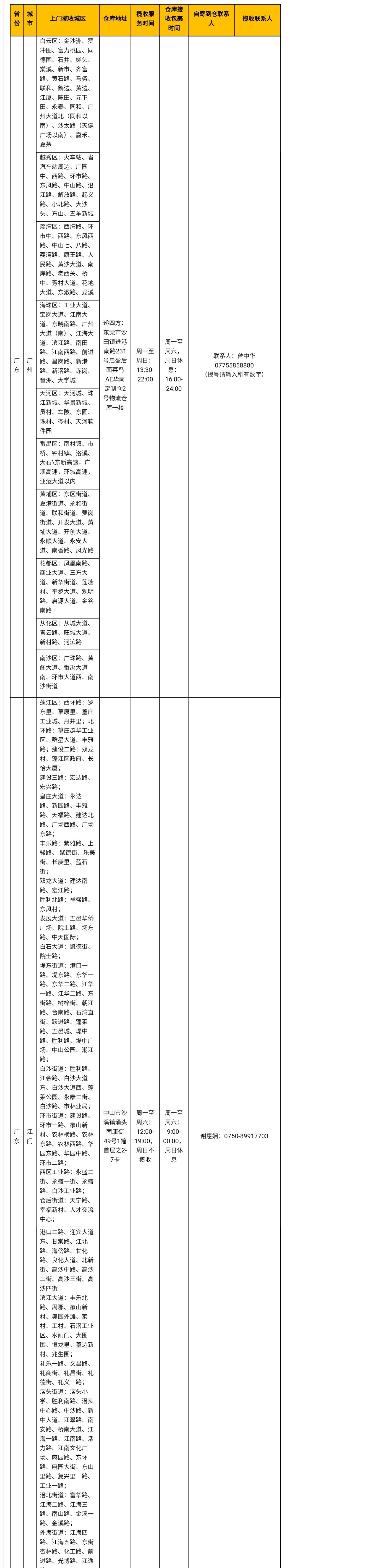 新 递四方珠海仓/中山仓/汕头仓/东莞仓/惠州仓/广州仓/佛山仓 地址: