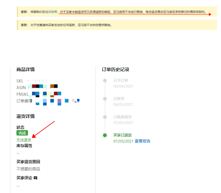 卖家A:这个时间点,突然一堆退货。我现在的情况特别惨,一天出六七单,好家伙,就有六七单退款不退货。导致我退货率过高,被亚马逊下架,还违反了亚马逊政策,货被检查,还要写POA,我真的是笑死了!