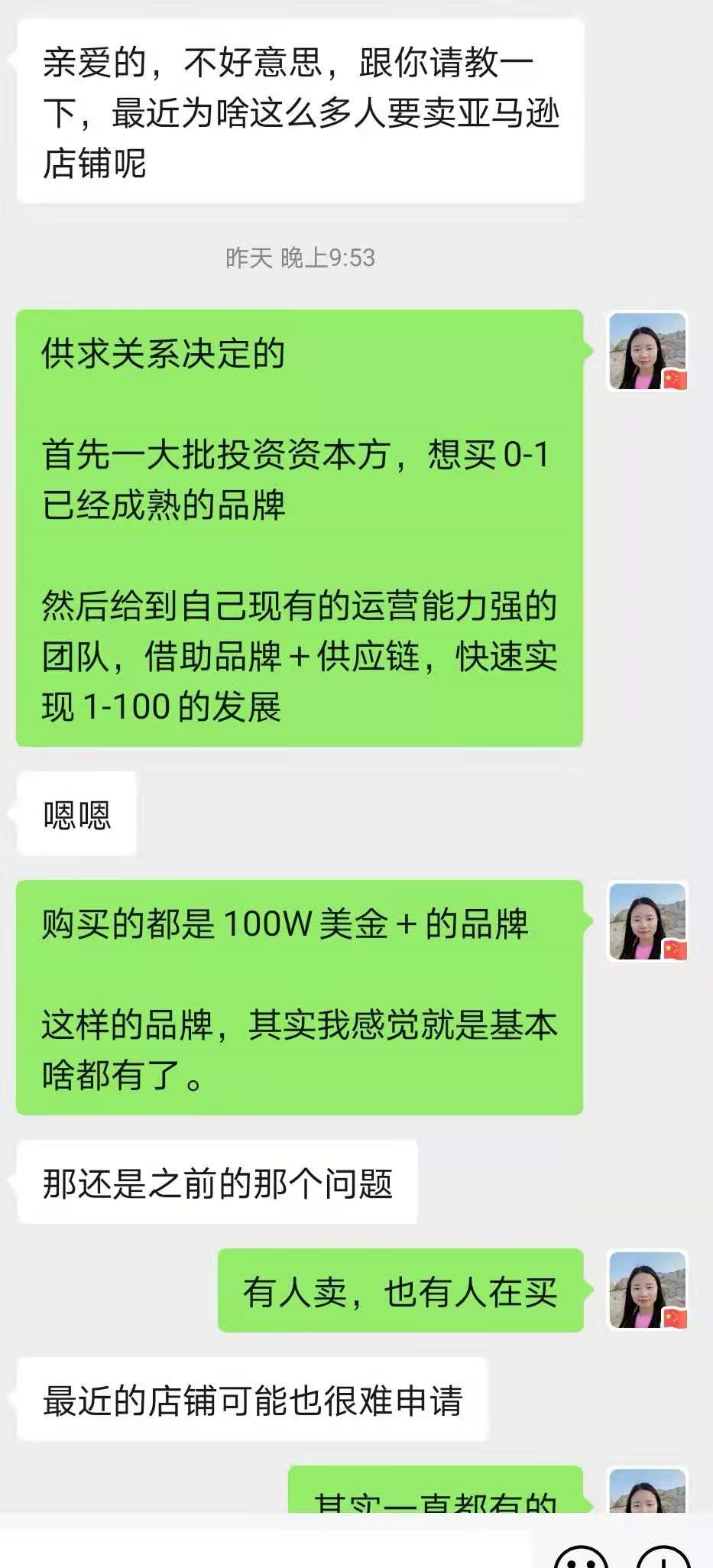 关于卖家为什么要卖店铺的思考,就先到这里,如果你有卖店铺的想法,我这边会组建一个亚马逊销售意向交流群,只要你有卖店铺的想法,都可以加入本群,我建这个群的目的也是为了能够收集这方面的相关资讯。