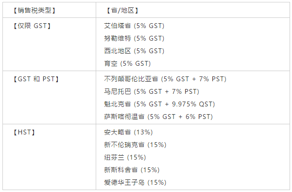 加拿大的销售税有三种:
