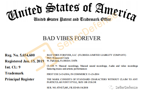 今天我们SellerDefense在排查案件时发现Keith律所代理了说唱歌手 XXXTentacion,又是一个全新的品牌,目前刚刚立案还没有开始冻结,各位卖家要提前排查自己店铺有没有侵权产品了,一旦发现一定要尽快下架提现!