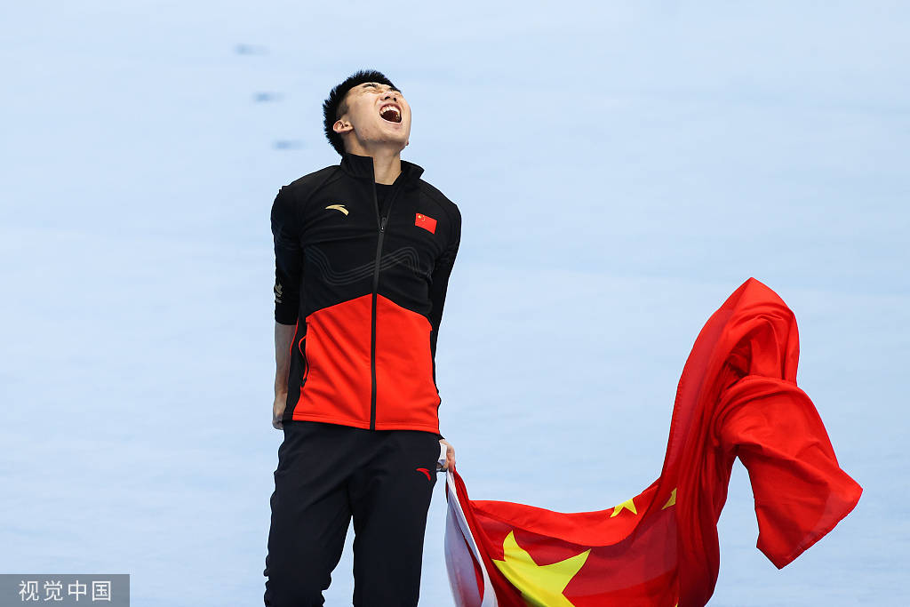 原标题:高亭宇夺冠泪洒赛场 身披国旗庆祝振臂怒吼