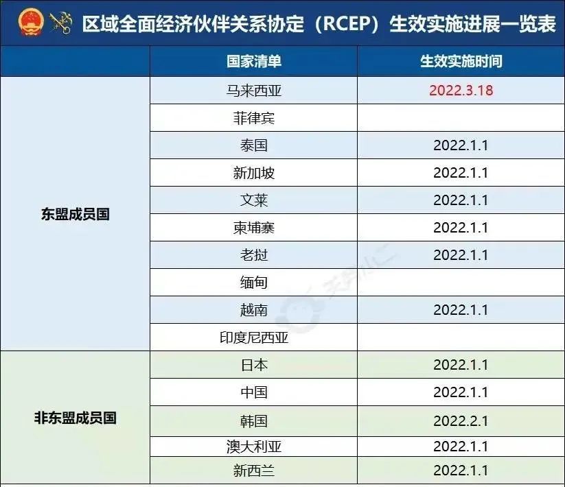 03.RCEP将于3月18日对马来西亚生效