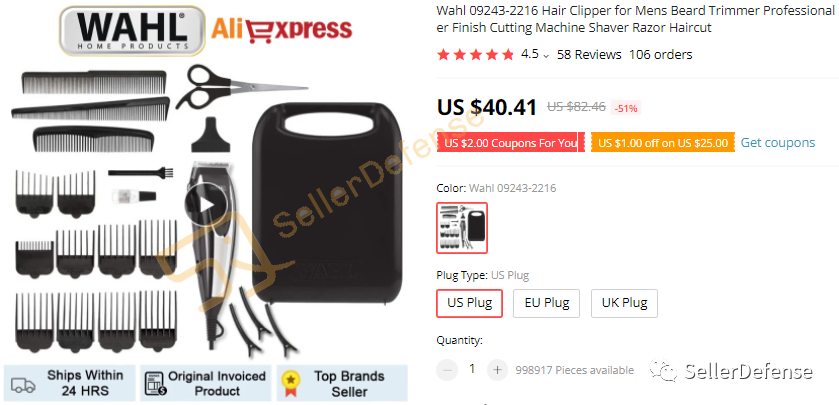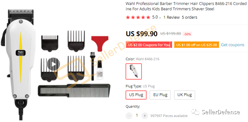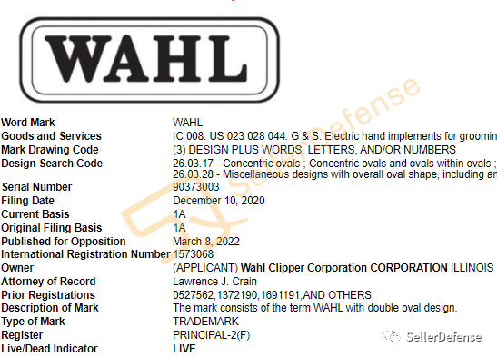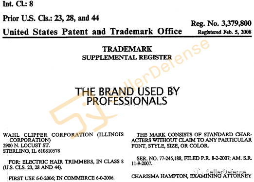 原告品牌:WAHL 推剪理发器