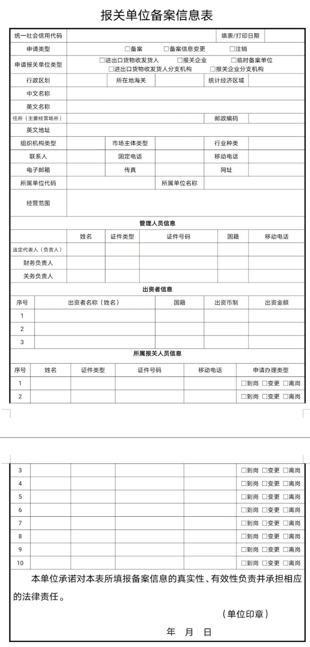 提交纸面或上传扫描件《报关单位备案信息表》的,应填写填表日期。申请类型: