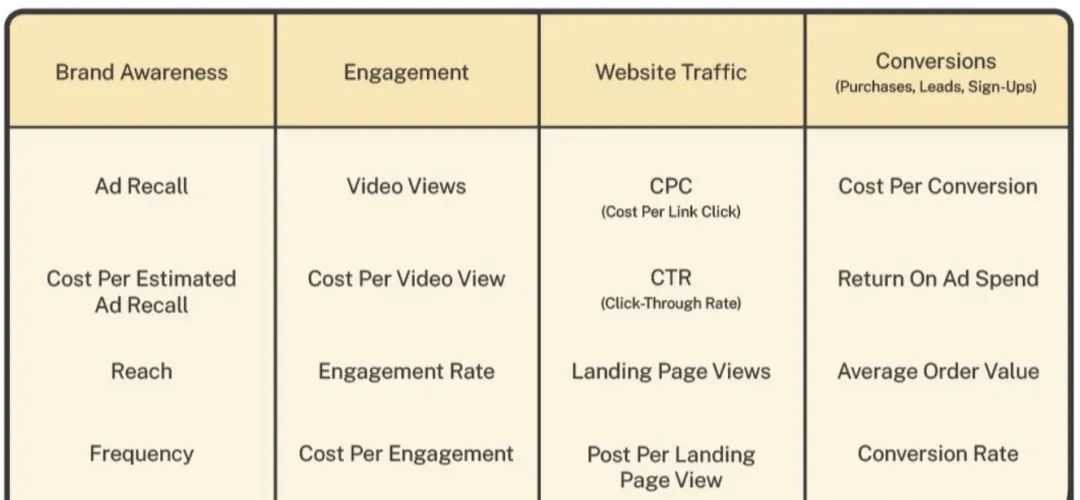 这部分内容帮助你更深入地了解和优化你的广告。Facebook为广告商提供了全面的分析能力,你可以根据相应数据衡量广告效果,下面介绍一些常用的关键指标。