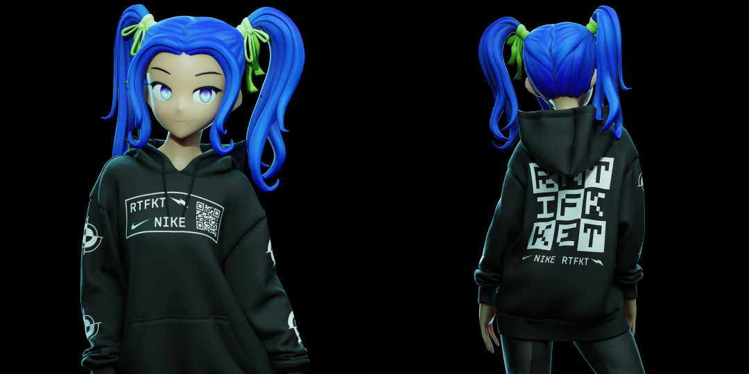 在联手推出 NFT 球鞋后,RTFKT Studios 于 4 月 29 日预告将继续联手 Nike 打造全新 NFT 服饰系列,并释出预览图,由一位 Clone X NFT 角色身着将两家品牌信息结合的黑色卫衣。