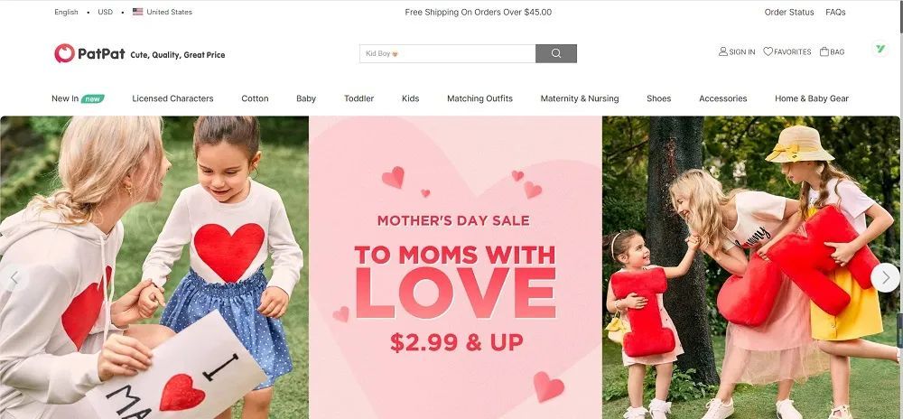patpat是一个母婴出口电商平台,产品分为玩具和童装等品类,专注于母婴服饰及周边用品。目标用户为美国、澳洲和中东地区25-35岁中高收入群体。社区及特卖的方式进行营销。