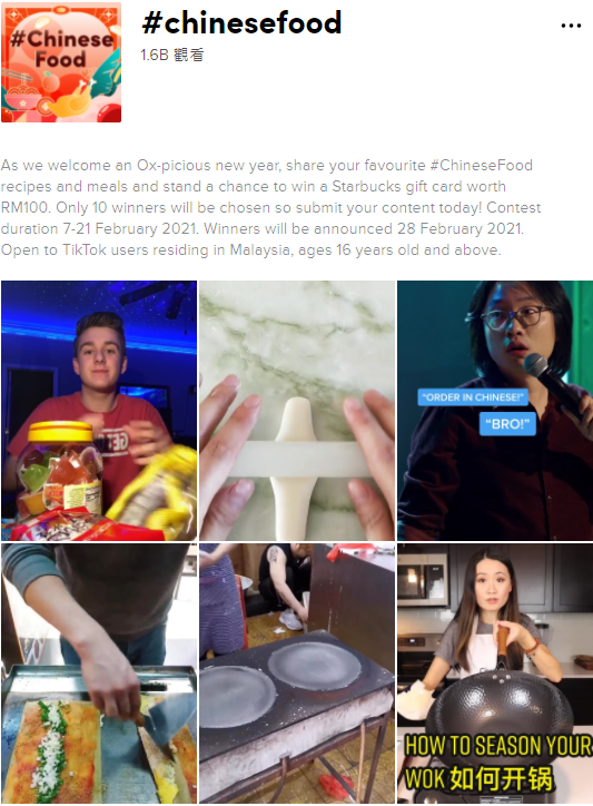 #Chinesefood(中国美食)标签页已经有16亿的观看量,这个数字是非常恐怖的,完全说明中国美食非常受TikTok用户的欢迎和喜爱!