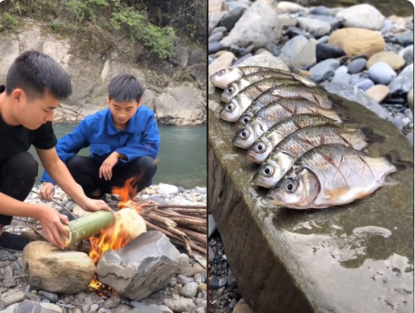 该创作者是来自一位中国四川男子,他在山水间做鱼的视频在TikTok上的播放量达500万,获得了近40万的点赞,俘获了世界各地30多万粉丝的胃!