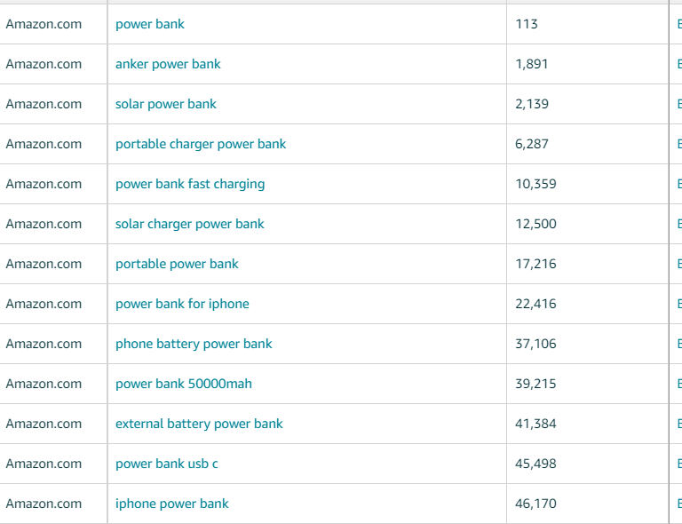 有一些朋友再跟我说,他想做一些红海市场的蓝海类目,他们家做充电宝的,想做一点蓝海长尾需求的充电宝,发现几乎没有,为什么呢,充电宝就两个需求,电池容量和产品厚薄,关键词就是两个power bank和portable charge,90%的订单都是出这里,还有一些词基本都是电源容量的词,之前iPhone 12出现了磁吸无线充电宝,但是整体技术不成熟,所以后面慢慢就消失了。