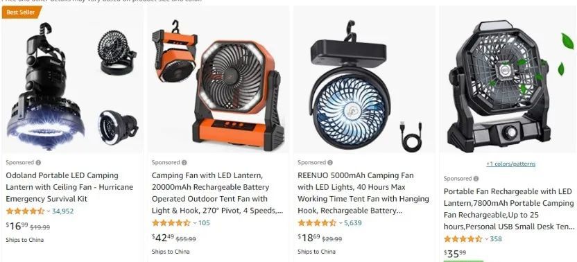 与户外徒步以及露营活动相关一些商品也呈现不俗的热度。野餐篮和帆布背包在今年5月份增长了101%。冰盒和冷藏箱今年5月份增长了103%。目前在亚马逊上,关于露营风扇的listing超过1000条,其中一条listing的累计评论更是超过3万条。