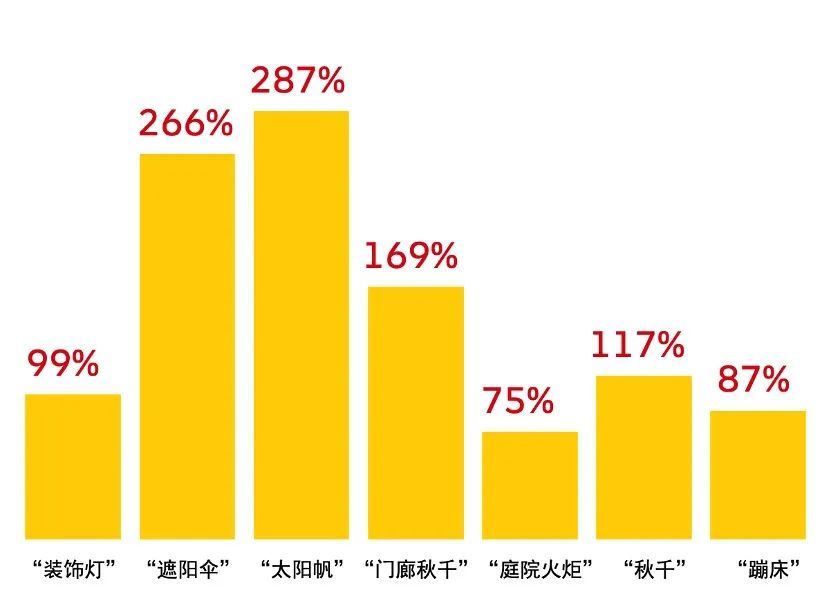 美国市场的割草机、驱虫器、吊床、秋千、太阳能户外灯等园艺产品搜索量均出现了明显增长。