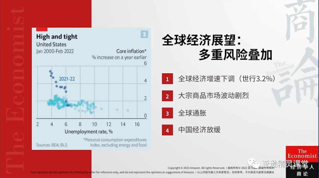 2. 全球经济存在下图的4个风险。就美国市场而言,虽然通胀达到了高点,但是和以往出现经济危机的情况不同,失业率在历史低位。目前就业情况是职位的数量比应聘的人数多,也因此可能减缓了人们对于经济危机的忧虑。