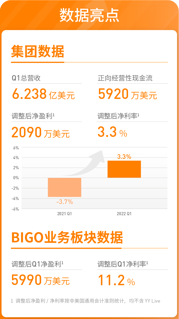北京时间 6 月 1 日,欢聚集团发布了 2022 年 Q1 财报。财报显示,欢聚集团 Q1 净盈利 2090 万美元,盈利水平同比上升。