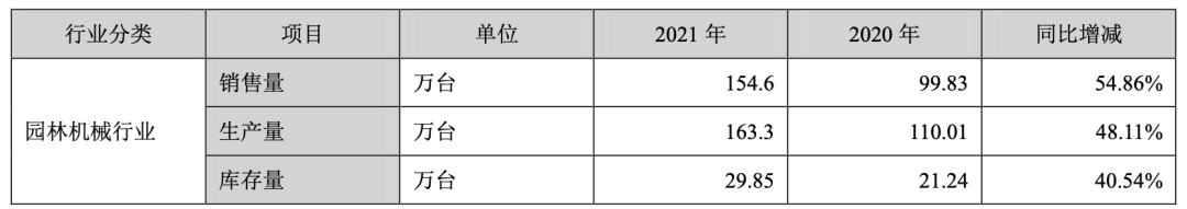 大叶股份主要从事割草机、打草机/割灌机、其他动力机械及配件的研发设计、生产制造和销售,是国内园林机械行业领先企业、割草机龙头企业。光在过去的一年里,大叶股份就卖出了近155万台园林机械,市场容量相当可观。