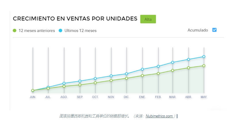 下图是Nubimetrics制作的墨西哥机器和工具单位的销量额增长图。