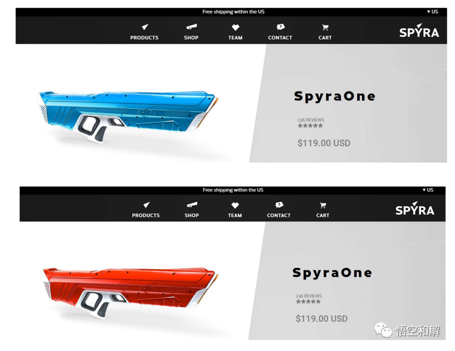 原告Spyra GmbH是一家德国公司,并且是SPYRA版权注册的所有者,由该团队设计推出的网红夏日潮玩水枪。水枪中的战斗机——Spyra玩具水枪,是SPYRA于2018年至2019年设计、发明并促成了原始SPYRA产品的材料,并于2019年6月在美国众筹平台www.kickstarter.com上首次发布了原始SPYRA产品,吸引了国际媒体的关注和成功。