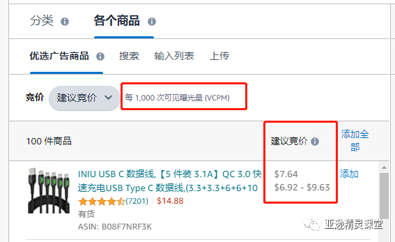 传统的亚马逊广告采用的是CPC(Cost Per Click)计费模式,即每当广告被点击一次就产生一次广告费用;而VCPM广告不是根据广告的点击来计费,而是基于每产生1000个可见曝光(或者叫做可见展示)即的费用为基本单位来计算广告花费的。因此,VCPM广告的计费和点击量是无关的,只和可见展示的次数相关。