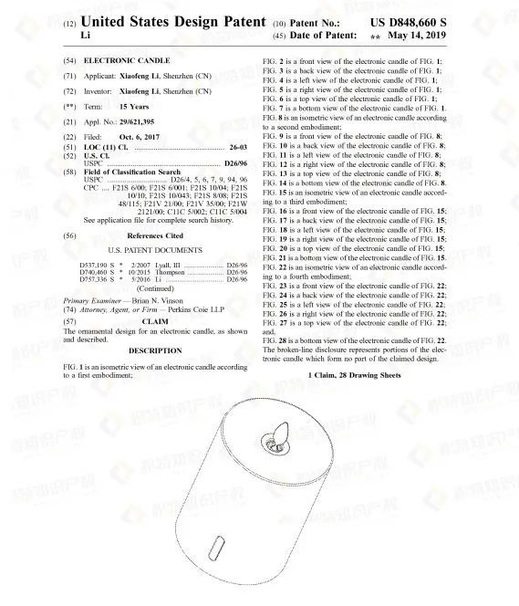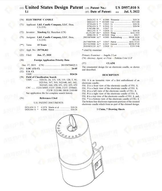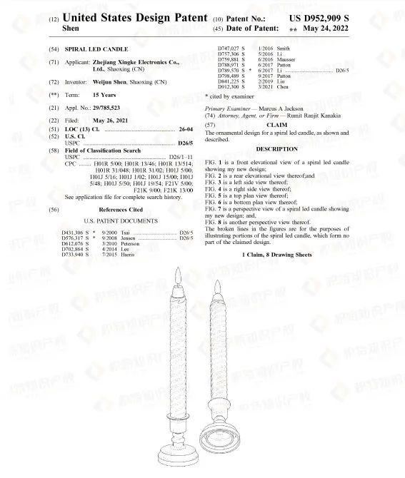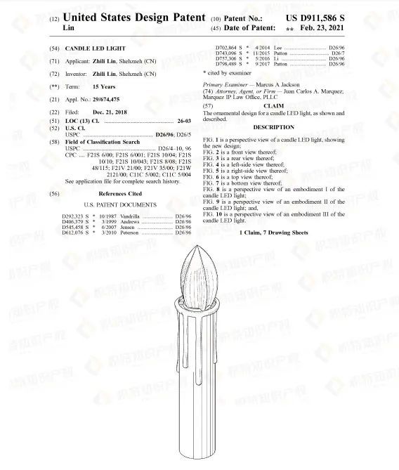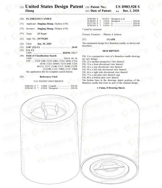 热销产品往往都藏有专利侵权风险,蜡烛灯也不例外。检索发现了大量外观专利,想要销售这类产品的卖家一定要谨慎再谨慎。