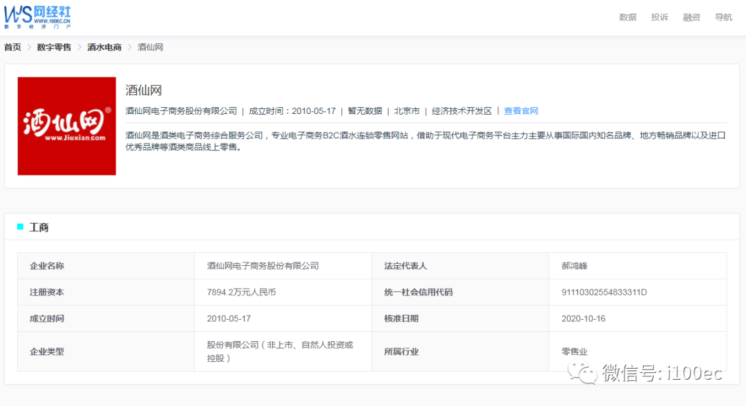 据网经社企业库(COP.100EC.CN)了解,酒仙网隶属于酒仙网电子商务股份有限公司,成立于2010年5月17日,法定代表人为郝鸿峰,注册于北京市经济技术开发区。是酒类电子商务综合服务公司,专业电子商务B2C酒水连锁零售网站,借助于现代电子商务平台主力主要从事国际国内知名品牌、地方畅销品牌以及进口优秀品牌等酒类商品线上零售。