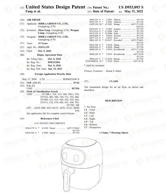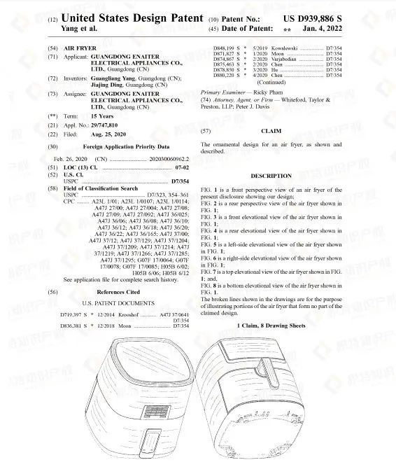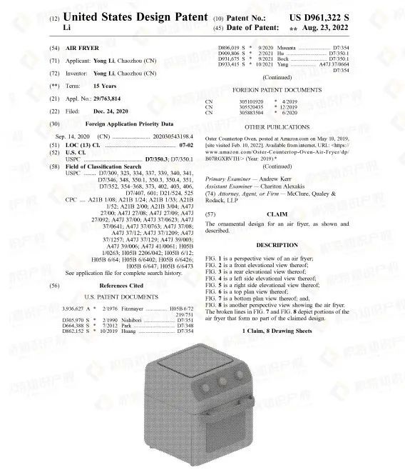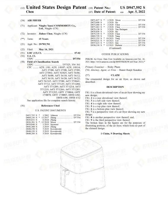 空气炸锅大卖特卖,危机也随之而来。越来越多卖家开始为产品布局外观专利,若是在上架前不经过仔细检索对比,很有可能会踩中侵权雷区,轻则下架listing,重则销售权限被移除。