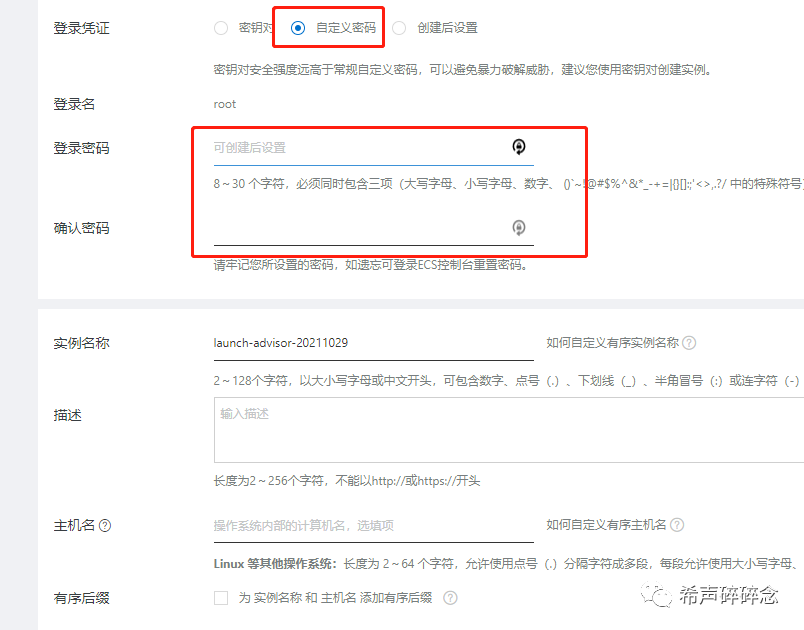 至于实例名称和主机名,按照你自己的喜好命名即可。