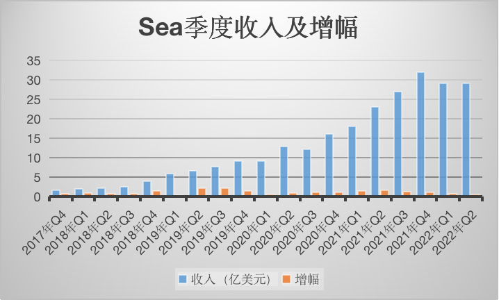 虽然整体营收 29 亿美元,同比增长 29%,但这已经是 Sea 2017 年上市以来录得的最低增长,而且环比增长为 0%。