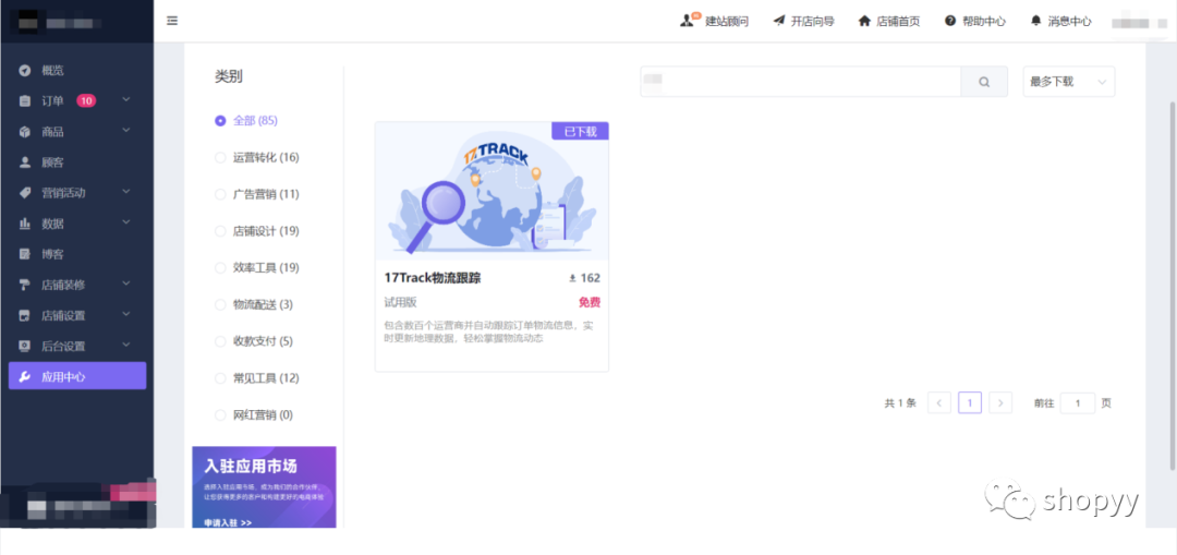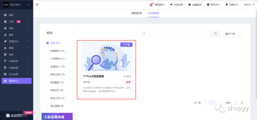 一、 前往应用市场安装【17TRACK物流跟踪】应用