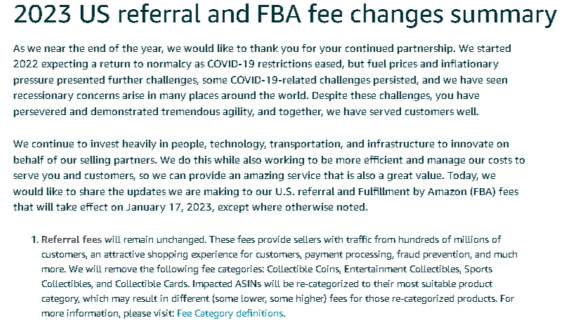 社长获悉,就在昨日(11月17号)亚马逊美国站发布了仓储出库和物流费用的变更通知!并于2023年1月17日起生效。