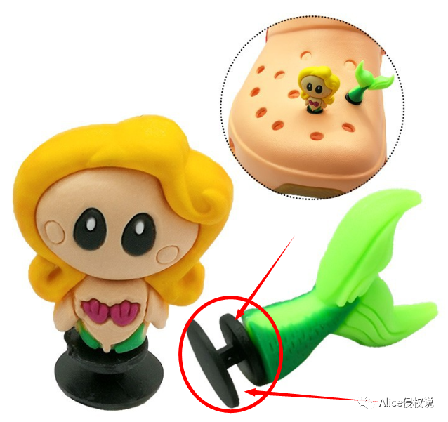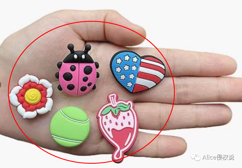 目前市面上大多数洞洞鞋花均采用该穿戴设计,本次投诉的是功能设计,特别针对的是该"穿戴设计"做了功能专利保护。